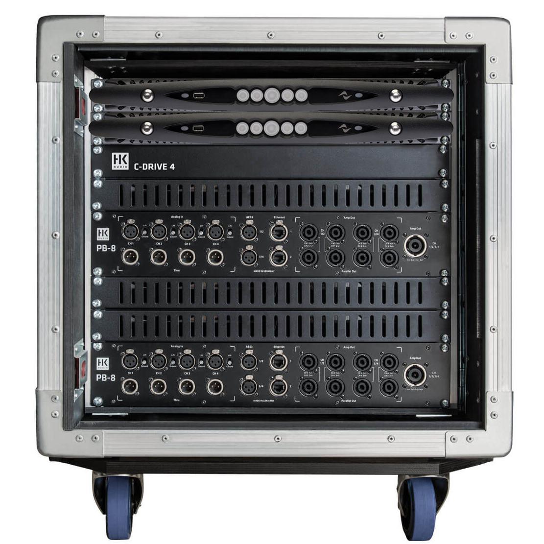 • C-DRIVE 8 PS X4 (10U Quick shut rack, 2x Powersoft X4 amp, 2x PB-8 Patchbay,1x PS 32 mains distribut