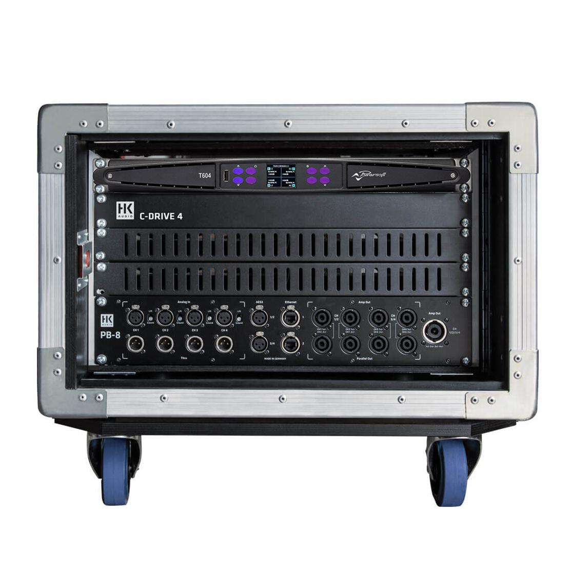 • C-DRIVE 4 PS T604 (6U Quick shut rack 80, 1x Powersoft T604 amp,1x PB-8 Patchbay, 1x PS 32 mains dis