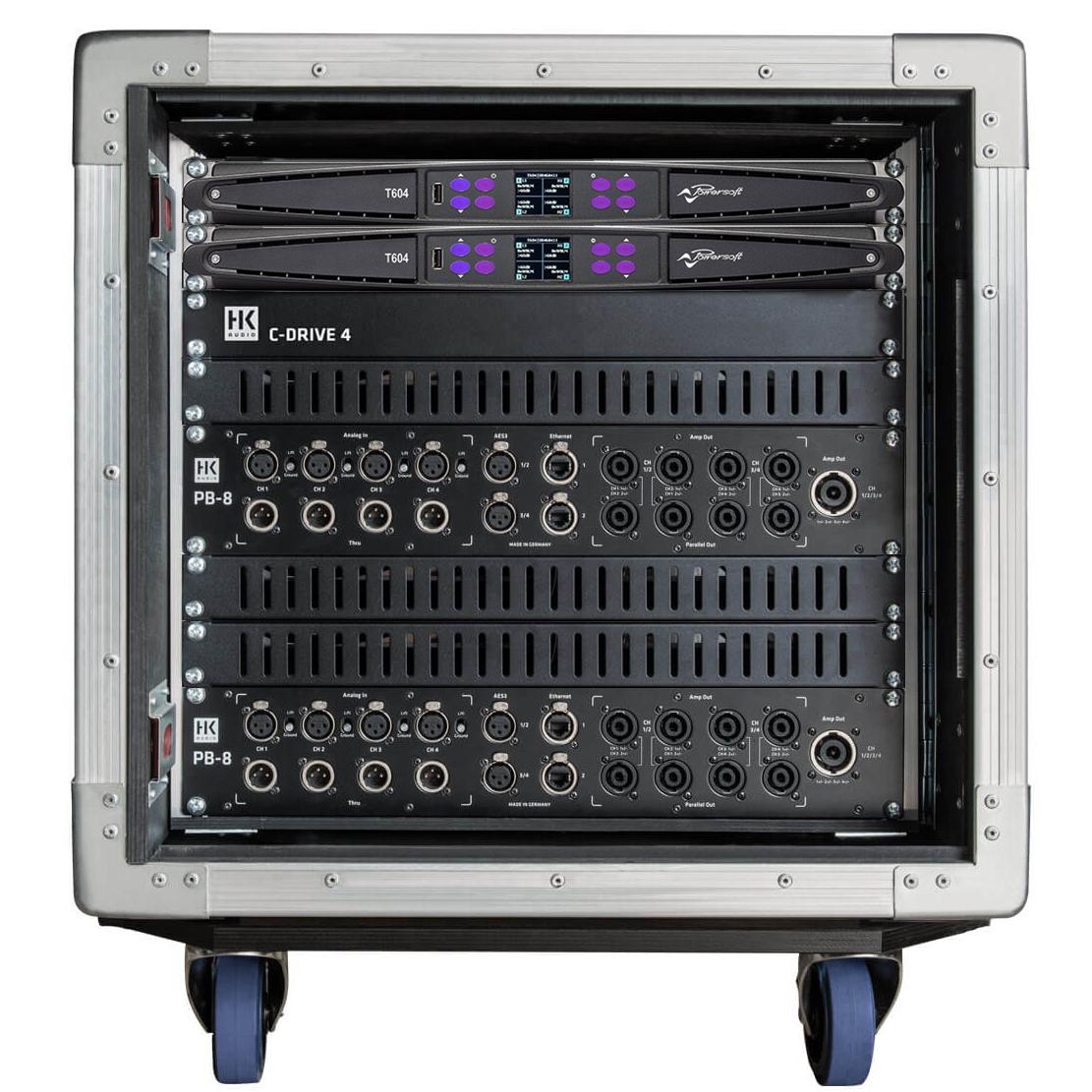• C-DRIVE 8 PS T604 (10U Quick shut rack 80, 2x Powersoft T604 amp,2x PB-8 Patchbay , 1x PS 32 mains d