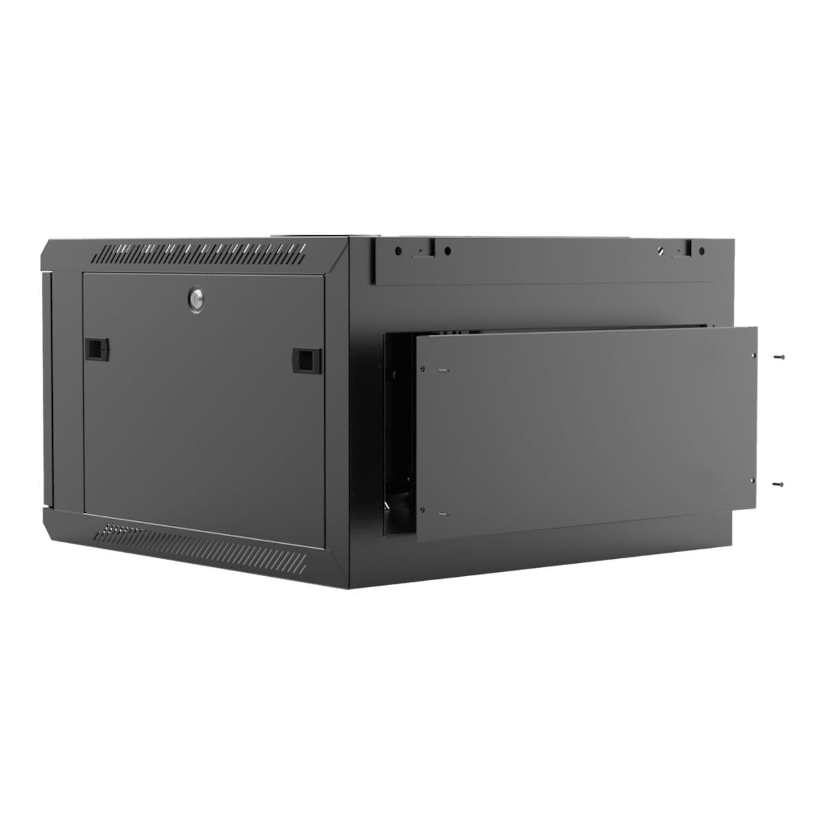 19” wall mount rack – 6 units – 600mm depth – Removable back Black version