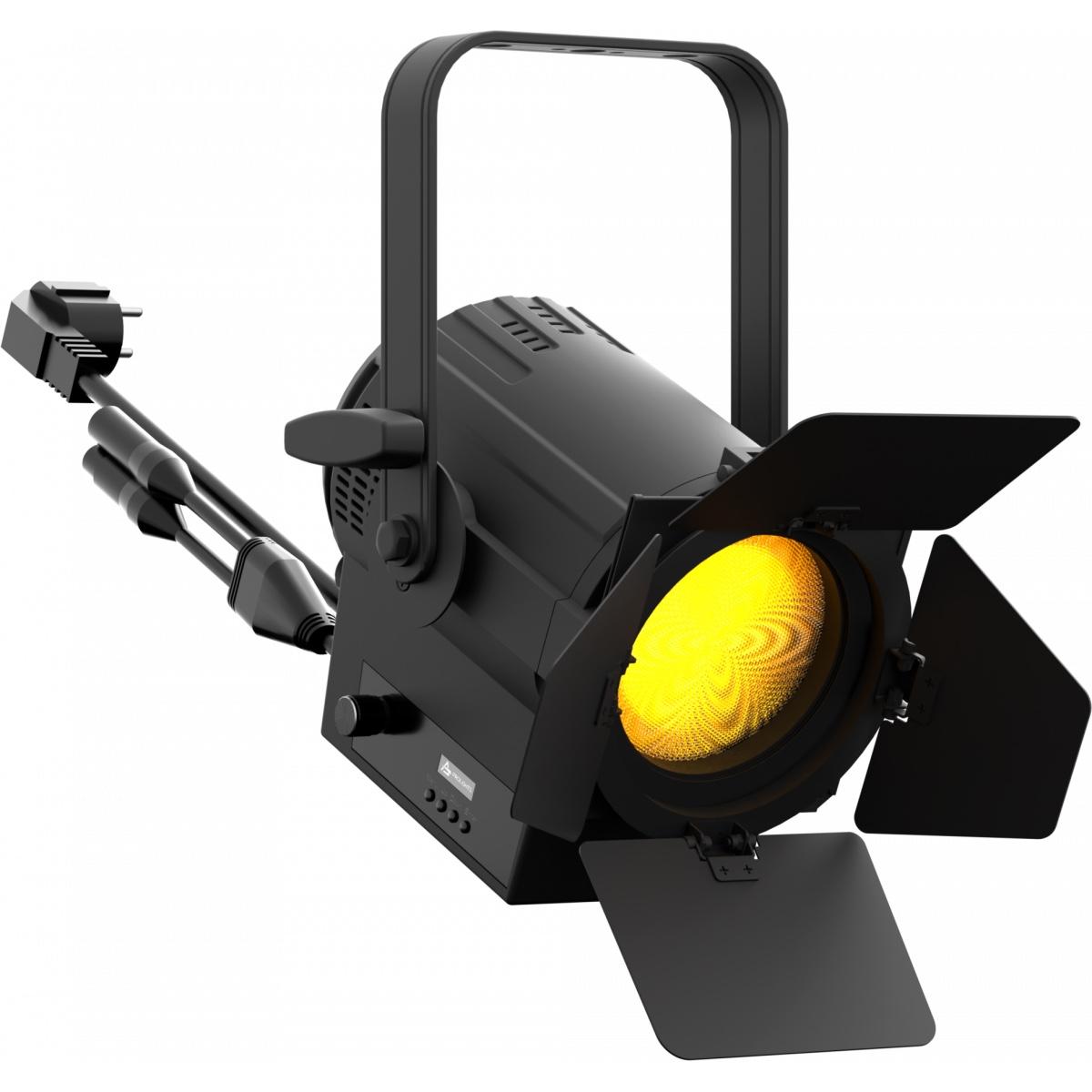 FRESNEL projector, 70W RGB+Lime LEDs, angle 24-82°, barn doors included